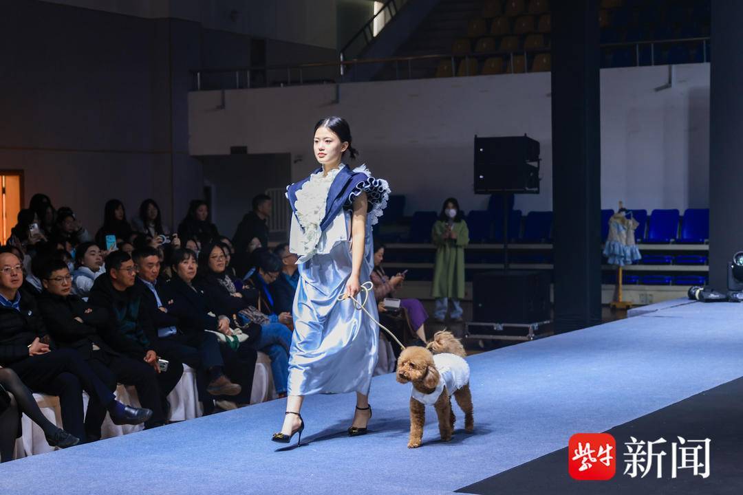 “哇,小狗也走T台,还衣着衣服!太可爱了吧!”记者看到,模特牵着身穿精巧衣饰的小狗走上舞台,博得观众颂扬。22届精良卒业生姚依蓓、吴林晓带着自决创立的宠物时尚装束品牌亮相现场。她们以宠物经济为容身点,充满阐述专业常识,自决创业,竣工了专业本事的墟市立异孵化。