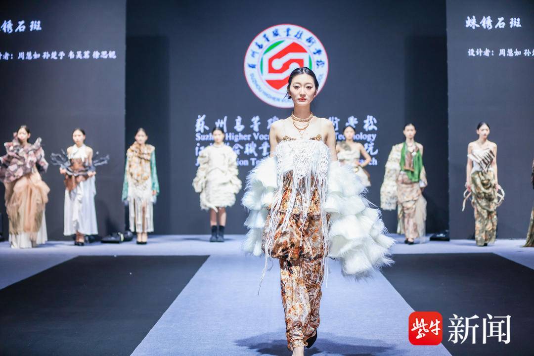 12月11日下昼,姑苏上等职业工夫学校举办装束工程系2021级装束与衣饰策画专业卒业策画动态展演。40名卒业生带着五载磨炼的匠心与热心,策画打制了18个重心的108套装束作品,为现场观众带来了一场振动的时尚盛宴。