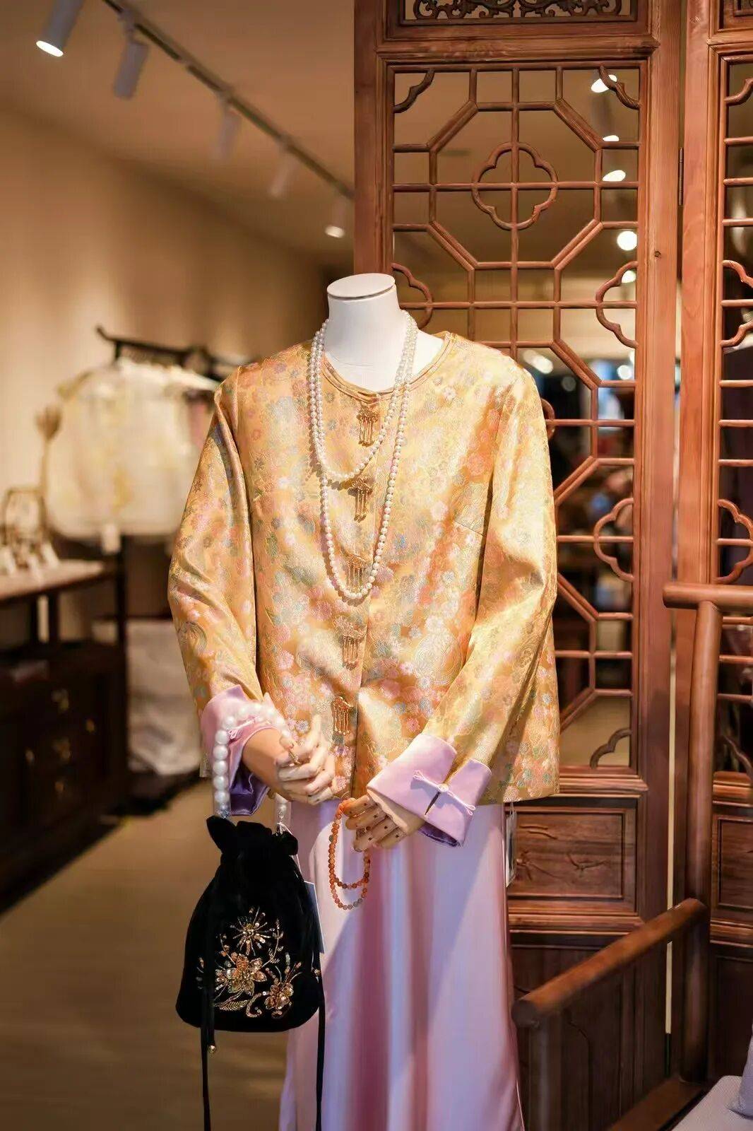 讲及新店为何取名为“锦”,杨仕嘉说,“锦”正本的旨趣是带有彩色纹样的丝织品,像是中邦守旧的宋锦、壮锦、蜀锦和云锦等,这些守旧面料也是店里“新中式”装束操纵的面料。